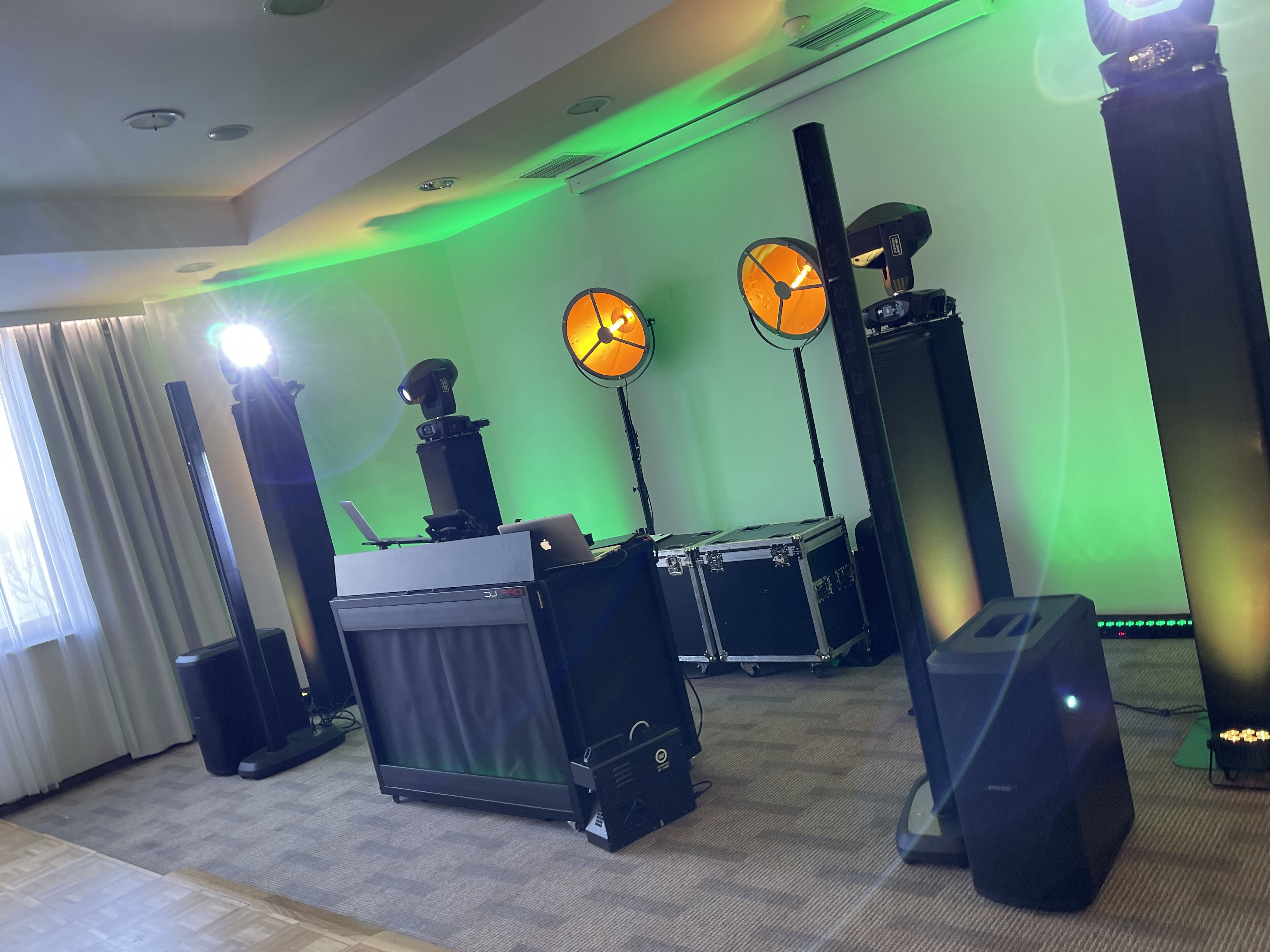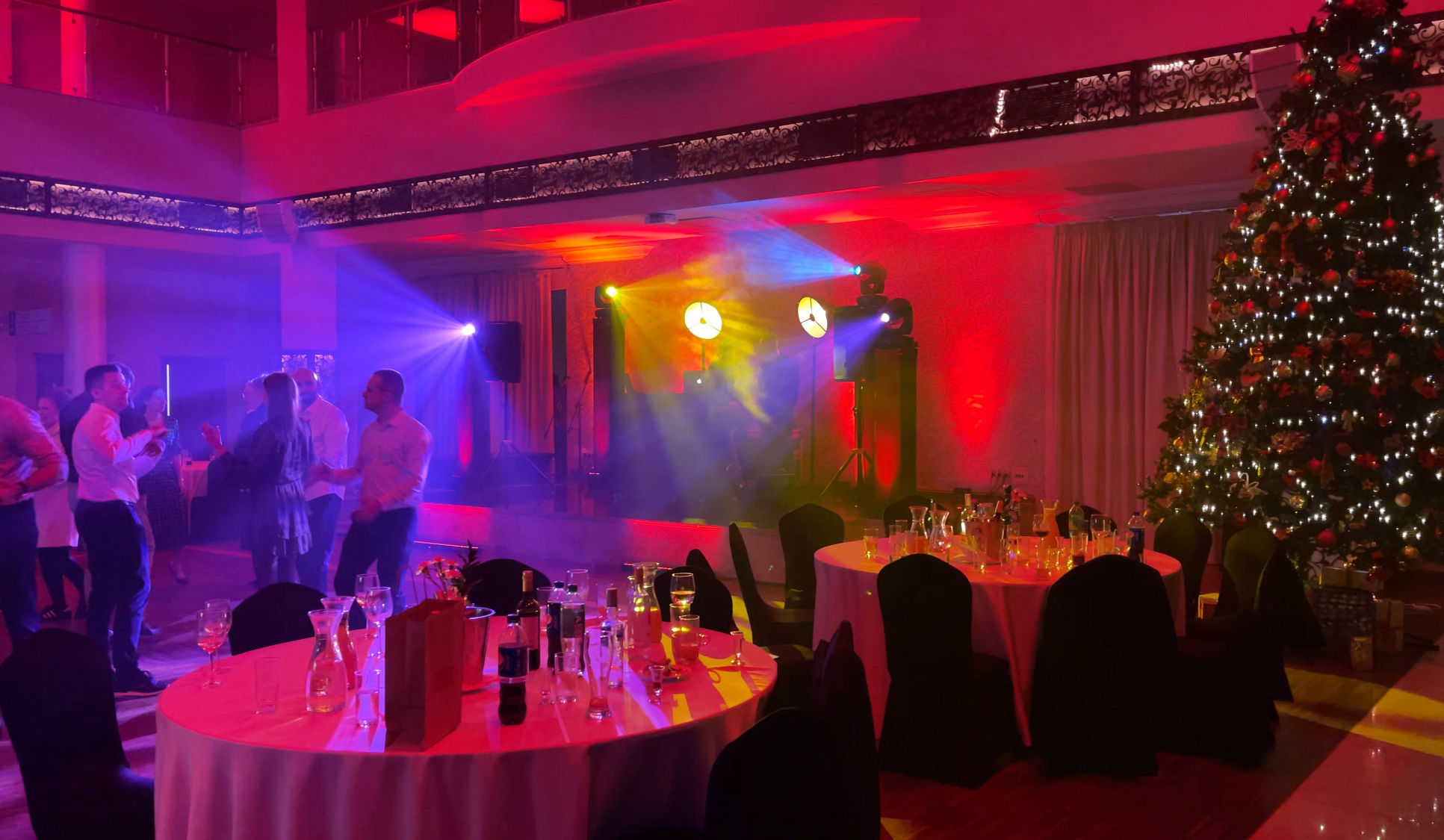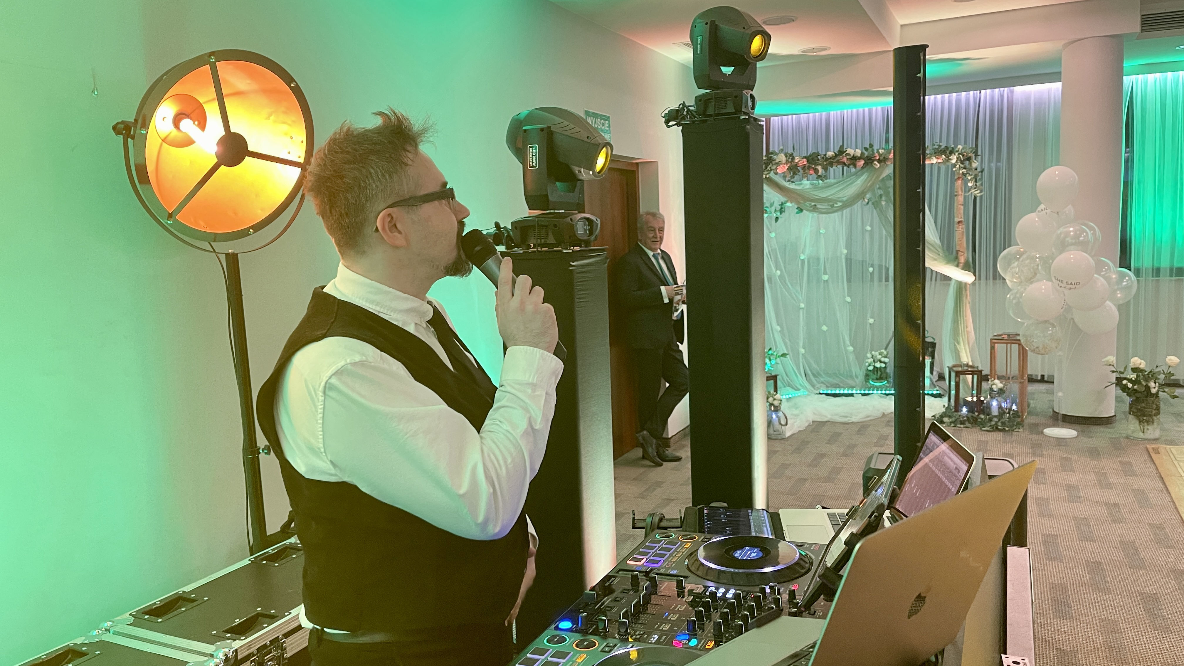 Pełna Kontrola Wizualna: Każde wydarzenie wspiera profesjonalny technik oświetlenia. Nie używamy trybu "auto" – światło jest programowane pod rytm muzyki, tworząc filmową atmosferę.